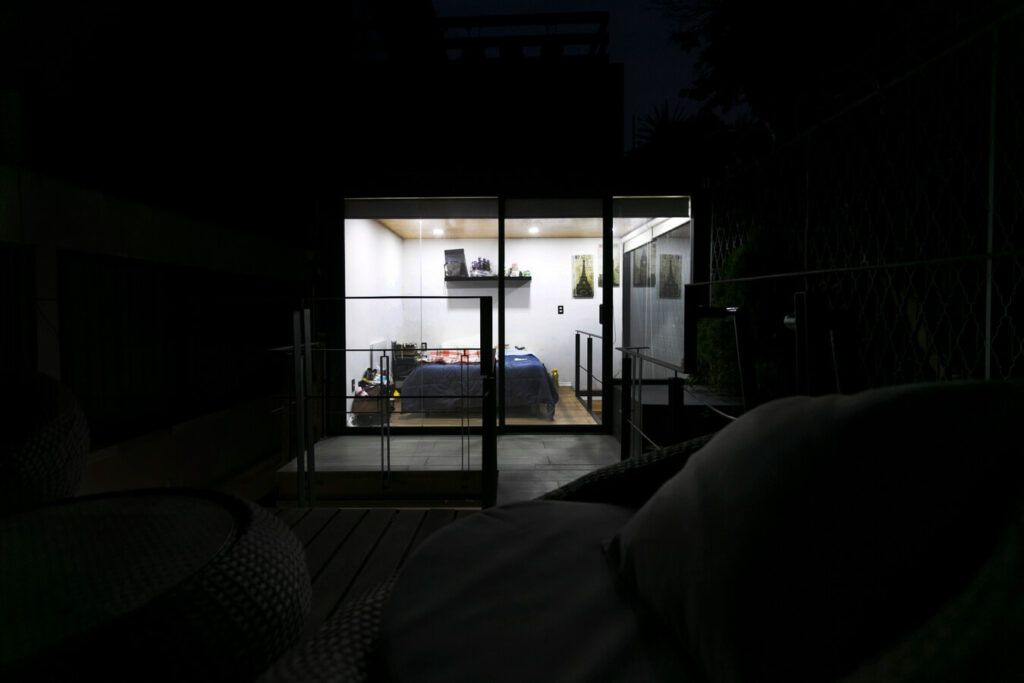 Descripción Loft pequeño de 27m2 ubicado en el patio trasero de una casa. Realizada en 5 semanas desde cimentación hasta los acabados. La intención fue generar un cubo con transparencias para la apreciación del paisaje, y a su vez generar amplitud y tener todos los espacios muy iluminados. Planta baja: área de estudio, baño, vestidor.Planta […]